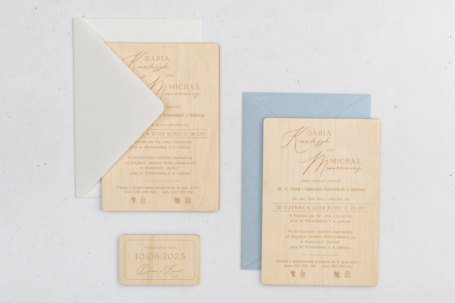 Drewniane i akrylowe zawiadomienia weselne
