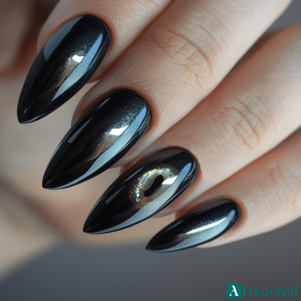 Inną opcją jest czarne ombre z przejściem w ciemną śliwkę, grafit albo chłodny brąz. Dzięki temu manicure nie jest jednolity, ale nadal pozostaje w ciemnej tonacji. Osoby szukające efektu światła mogą wybrać czarne paznokcie z efektem cat eye, gdzie magnetyczna drobina układa się w smukłą smugę i wygląda jak refleks na lakierowanej powierzchni. Na czarnej bazie ten efekt jest szczególnie wyrazisty.