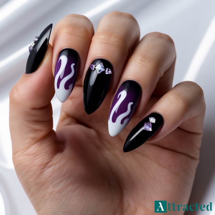 • Wykorzystaj zdobienia 3D: metalowe ćwieki, łańcuszki lub czarne perły przyklejone wzdłuż krawędzi paznokcia.