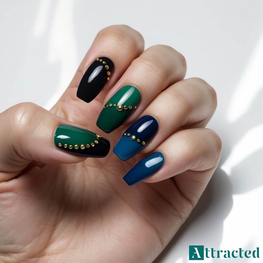 6. Czarno-zielone i czarno-niebieskie kombinacje: głębia oceanu na paznokciach