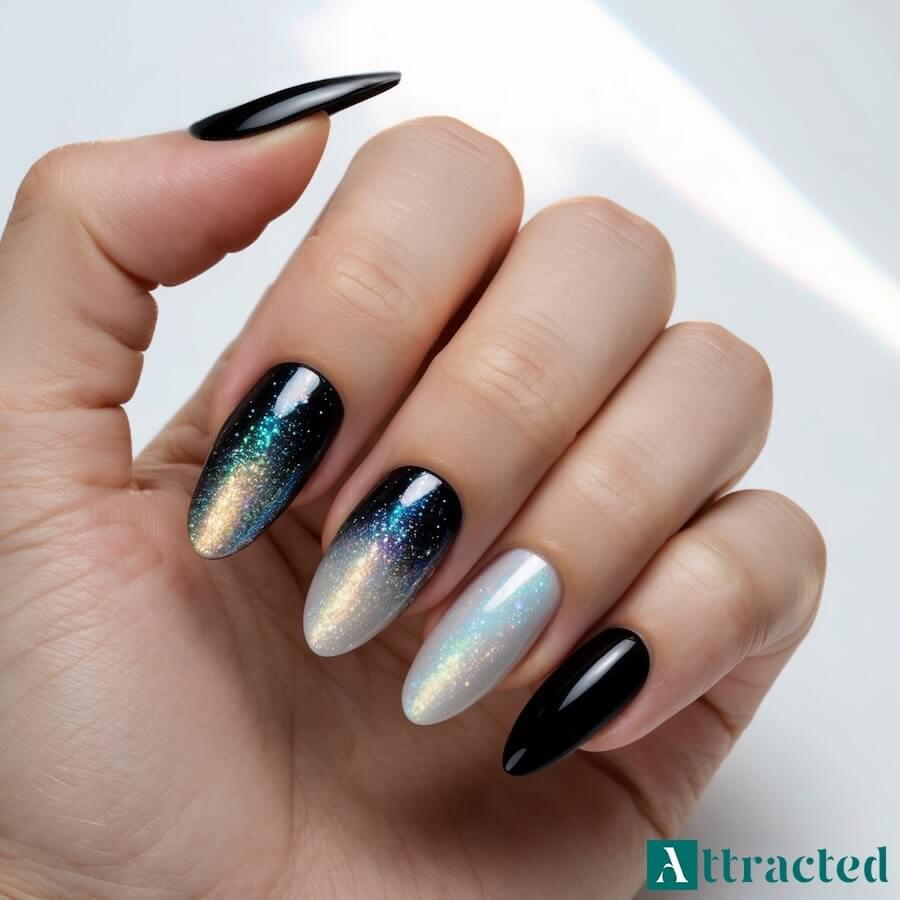 Czarne paznokcie z efektem syrenki – 8 inspiracji