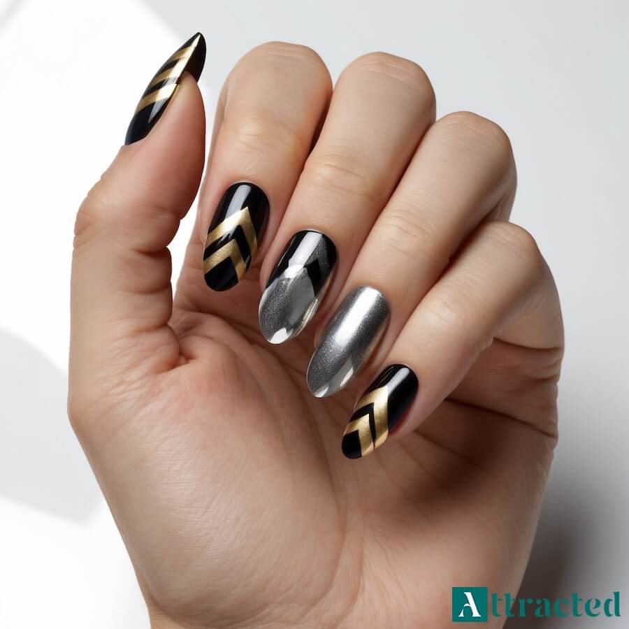 To propozycja dla osób szukających uniwersalnego połączenia elegancji i odwagi. Metaliczne akcenty pasują zarówno do codziennych stylizacji (np. z oversizeowym swetrem), jak i sukni wieczorowych. Unikaj przesady – jeden paznokieć z pełnym metalicznym zdobieniem wystarczy, by podkreślić charakter.
