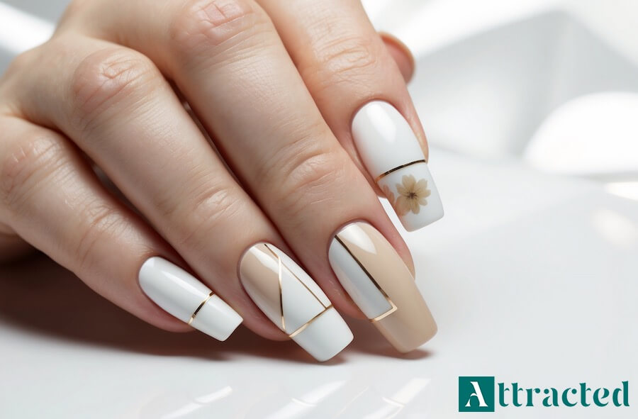 - Złote akcenty na wybranych paznokciach
