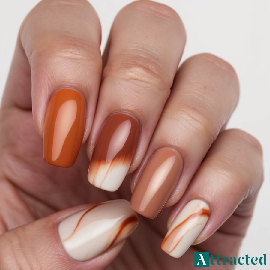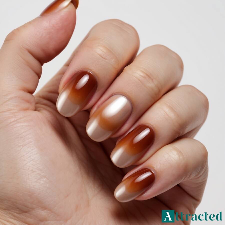 Aura nails w ciepłych tonach i miękki gradient w jesiennym klimacie