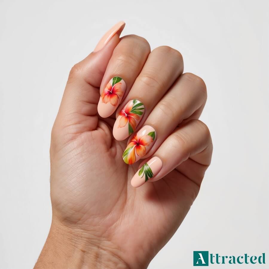 5. Paznokcie z motywem hibiskusa na czas urlopu