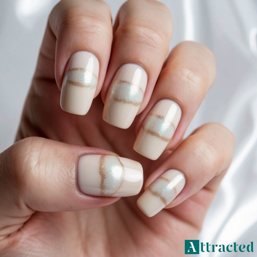 Inspirowana słodkim przysmakiem stylizacja to połączenie neutralnego nude z hipnotyzującym, mokrym połyskiem. Przezroczyste lub ecru tło z opalizującym pigmentem imituje szkliwo na pączku, tworząc iluzję wilgotnej tafli. Ten trend, spopularyzowany przez Hailey Bieber, jest synonimem minimalistycznego luksusu.