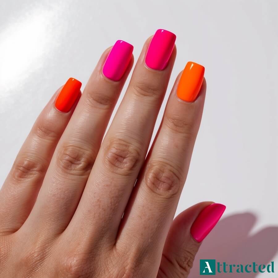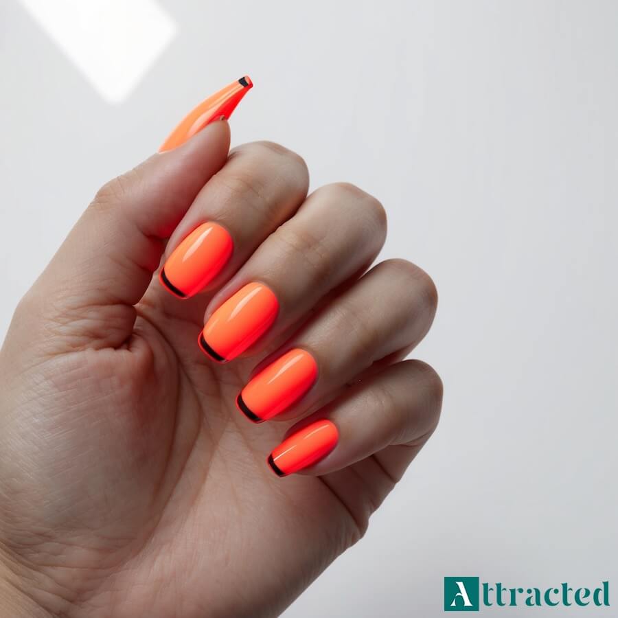 • Minimalistyczne – pojedynczy neonowy paznokcie na neutralnym tle (np. bieli lub beżu) lub cienka linia wzdłuż krawędzi płytki.