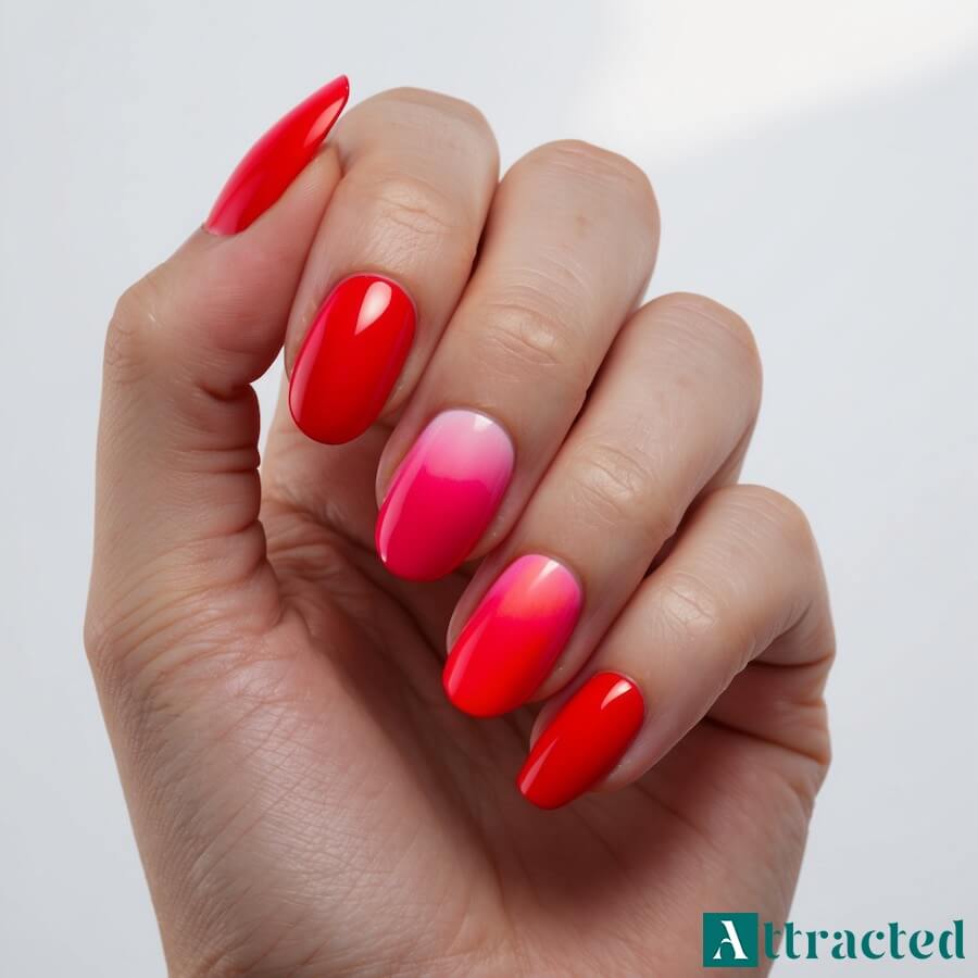 Neonowe gradienty to explozja energii, która w 2025 roku łączy odcienie czerwieni z innymi jaskrawymi kolorami, takimi róż elektryczny czy pomarańcz magma. Efekt? Manicure przypominający zachód słońca w tropikach.